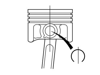 Assemble the connecting rod and piston with the piston pin. Check that the classification and any numbering for each cylinder/piston diameter and connecting rod correspond.