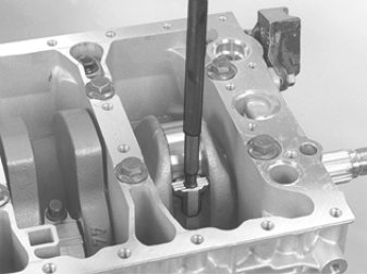 Caution! The bearing covers are not interchangeable. Also note the position of the bearing caps in relation to the rotation of the crankshaft.
