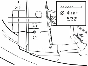 - Drill holes for the timer relay in the lower side/front edge of the left-hand front member using a -4 mm (5/32") drill bit.