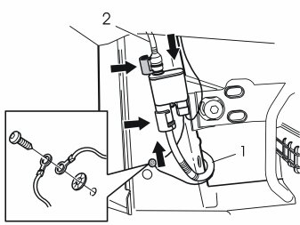 - Insert the new cable in the lead-in hole to the passenger compartment and press the rubber grommet, positioned on the cable, into the hole.