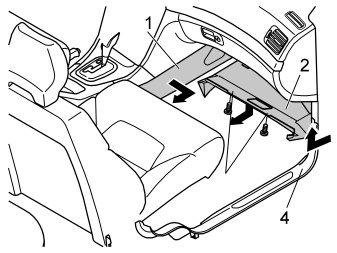 - Remove the panel (4) in the right-hand front door sill by pulling it away backwards at its top and front edges. Following which, pull the panel up so that all the clips detach.
