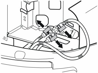 - Detach the cable for the passenger compartment connector socket from the clip in the edge of the plate, at the bending rubber hose for the water drainage.