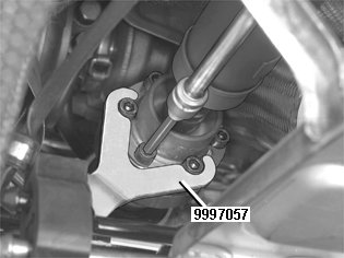 Remove the propeller shaft screws. Use: 999 7057 Counterhold 999 7057 Counterhold.