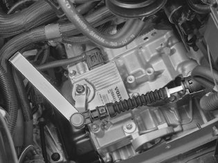 - the gear selector cable in the mount on the transmission and press the cable into the ball