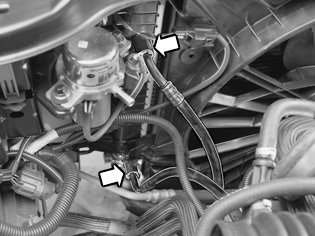 - the 2 coolant hoses to the expansion tank; tighten the clamps