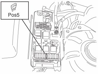 - Remove the cover from the fuse box in the engine compartment. Install a 20A fuse in position 5.