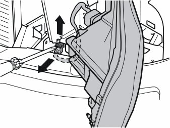 - Pull the catch up completely, detach the connector and place the headlamp to one side.