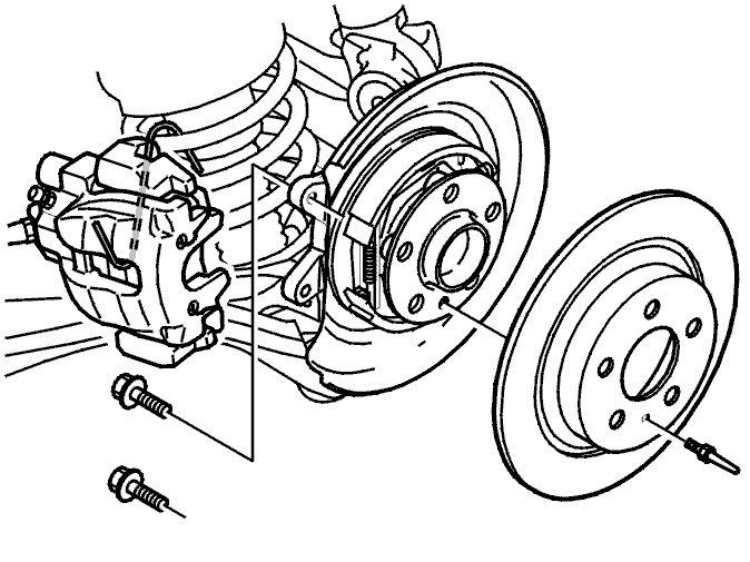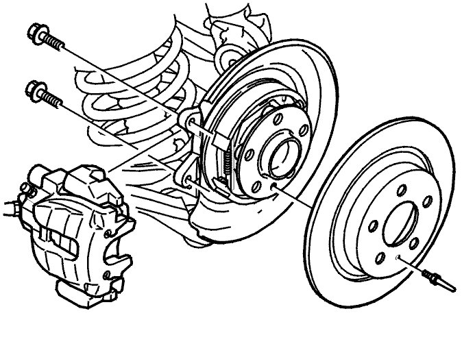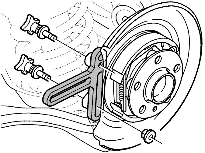 - the mounting screws for the brake caliper holder. Hang the brake caliper from the spring using a wire