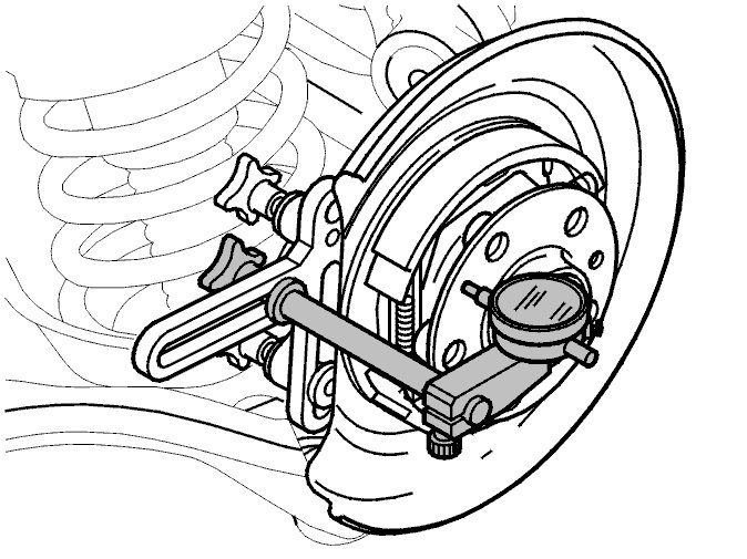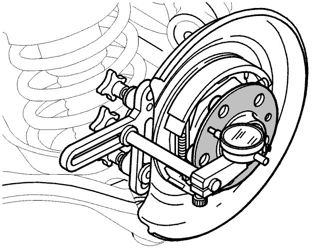 Put the test gauge point against the hub flange as illustrated.