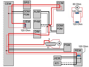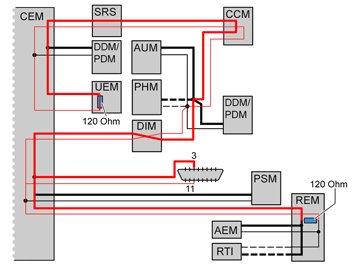 The interface between the high and low speed sides is supplied by the central electronic module (CEM) which converts the transmission speed up or down for communication between the two network sides.