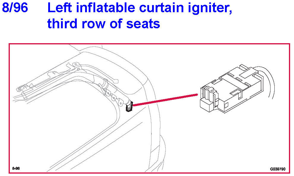 8/96 Left Inflatable Curtain Igniter, Third Row of Seats