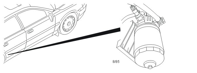 There is a diesel filter on the fuel line from the fuel tank. The rear electronic module (REM) controls warming up of the filter by checking the power supply to the filter via a directly