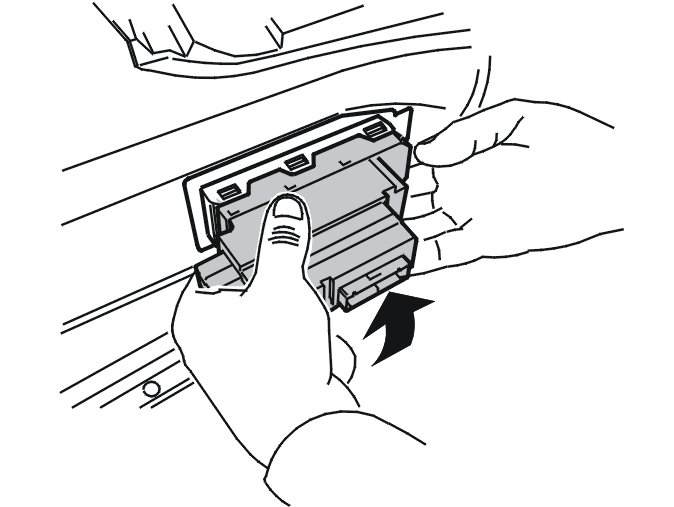Grasp the underneath of the control module. Press upwards. Carefully pull the control module from the lower catches.