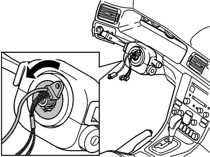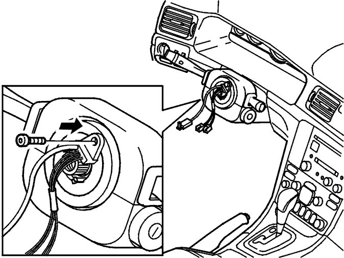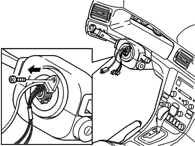 Turn the contact reel clockwise two complete revolutions. Then turn clockwise until the screw hole is in position "one o'clock" as shown.
