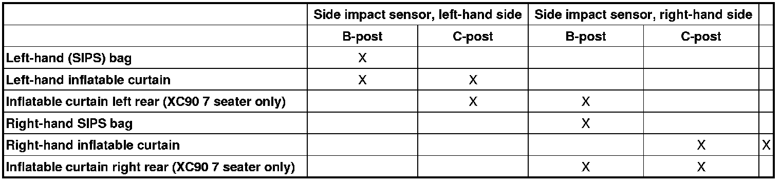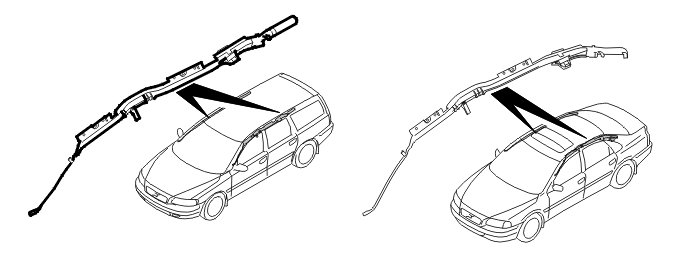 For the 7 seater XC90 models, the inflatable curtains are in the roof between the A and D-posts. For the 5 seater XC90 models and other models, the inflatable curtains are in the roof between the A and C-posts.