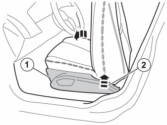 Pull the side panel straight up at the trailing edge (2).