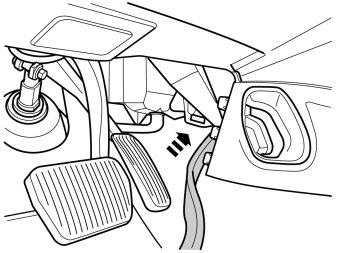 - Pull the cable harness up into the dashboard and out through the hole under the steering column.