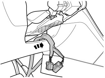 - Connect the connector from the cable harness to the existing connector. Place the wiring and connectors in their original position inside the glove box.