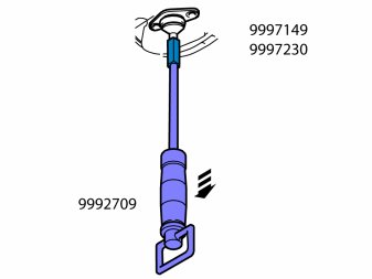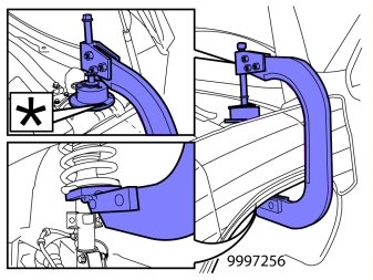 Place 999 7256 Press tool 999 7256 Press Tool against the underneath of the spring strut seat and on the suspension strut in the engine compartment.