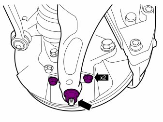Tighten the ball joint with the new screws x 2. Tighten to 50 Nm.