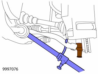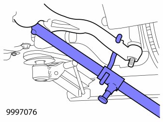 Move the spring strut back slightly to expose the ball joint. Hold the spring strut in place using 999 5682 Tensioner band 999 5682 Tensioner Band.