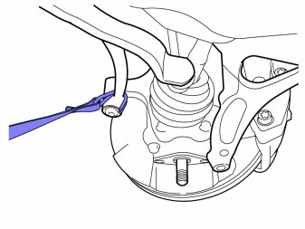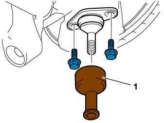 Remove the protective cap from the ball joint. Align the ball joint lug in the control arm.