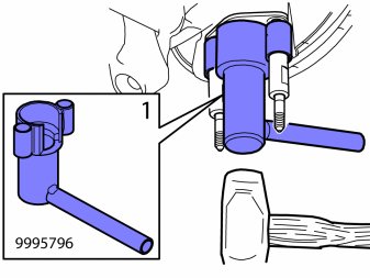 Press up the ball joint against the seat with 999 5796 Press tool 999 5796 Press Tool.