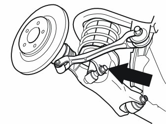 - Secure a tensioning strap between the mounting for the jack and the outer hole on the bottom of the lower control arm to relieve the load on the screw in the front mounting for the lateral link.
