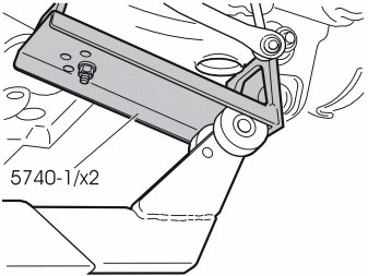 - Raise the tensioner using the threaded rod (P/N 999 5659)