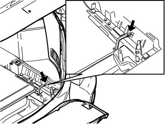 - Detach the mountings for the parking brake cables from the sub-frame.