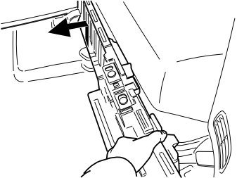 - Carefully pull off the support for the floor at the front edge in the cargo compartment by lifting it slightly so that it releases from the insulation panel. Then pull it slightly inwards towards the centre of the car. Pull carefully, the support for the floor in the cargo compartment is brittle.
