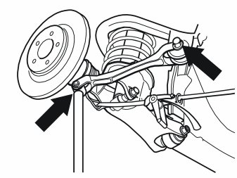 - The lower mountings for the control arms in the stub axles. Tighten to 80 Nm (59 lbf. ft.)