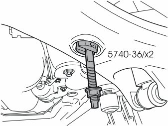 Tensioner, P/N 999 5659, is used when working on the suspension where the screwed joints for the rubber bushings need to be tightened to the normal position (i.e. in the same position as the car would be in on the ground with three occupants and a full tank). The tensioner takes the loads off the suspension components when removing/installing them.