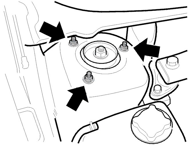 Install the spring strut in the bodywork using new nuts. Tighten. See Tightening torque [1][2]Specifications.