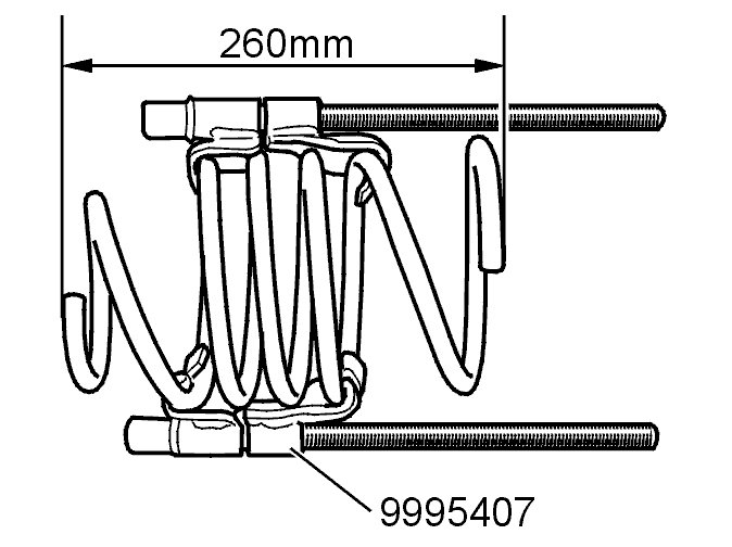 Compress the new spring to a length of approximately 260 mm. Use spring clamps 951 2911 Hydraulic piston 951 2911 Hydraulic Piston with 951 2914 Claw 951 2914 Claw.