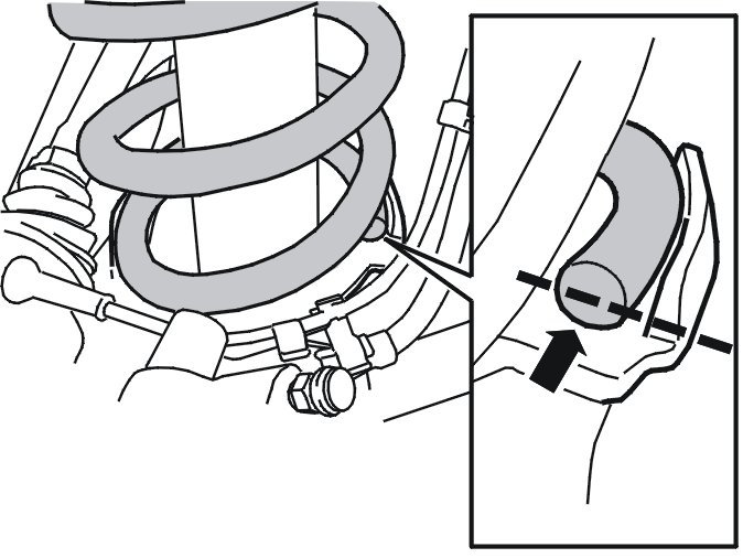 Note! make sure the shock absorber mounting fits into the control arm attachment lugs.