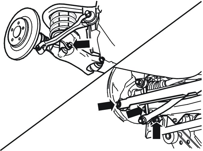 Tighten the screws for the control arm, lateral link and shock absorber. M12
