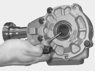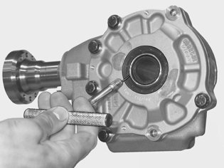 Check the oil level in the bevel gear. Refer to: Replacing the pinion seal for the bevel gear, TF-80SC AWD Replacing The Pinion Seal For The Bevel Gear.