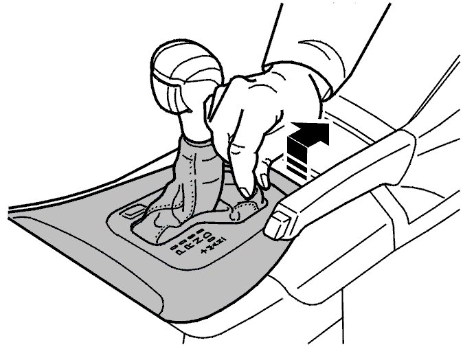 Stand astride the center console. Grasp the gear selector lever knob with both hands. Pull it straight upwards with a hard jerk.