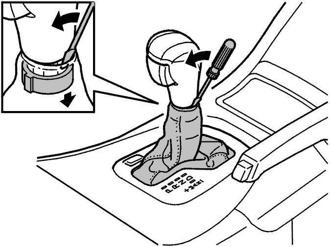 Insert a small screwdriver between the boot and the gear selector lever knob to access the lock bracket.