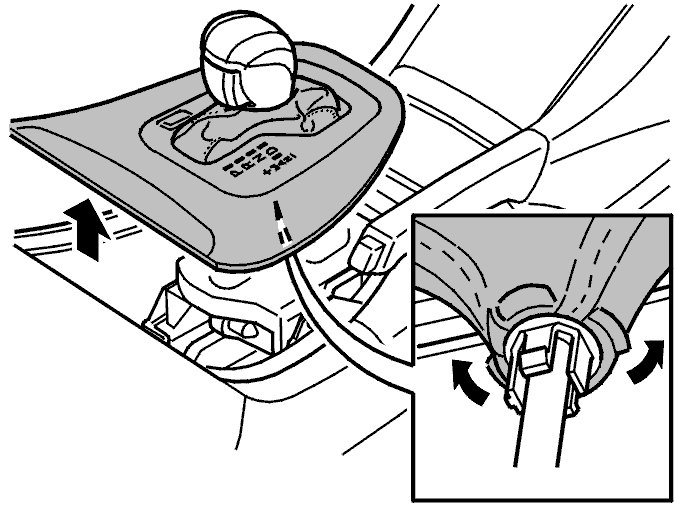 Bend the panel downwards. Press the gear selector boot into place in the center console.