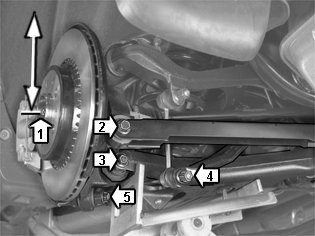 - 1 M12 nut for the lateral link mounting (4). Tighten. Counterhold using a Torx spanner so that the boot does not rotate