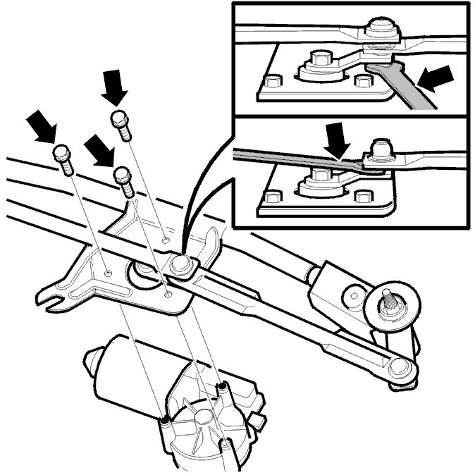 - Remove the 3 screws from the windshield wiper motor.