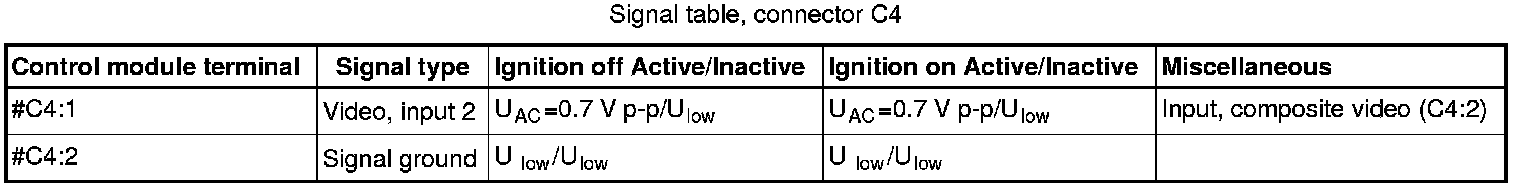 All the values given below are between the respective terminal in column 1 and terminal # C2:5 in column 1 (power ground) unless otherwise stated in brackets after the table entry.