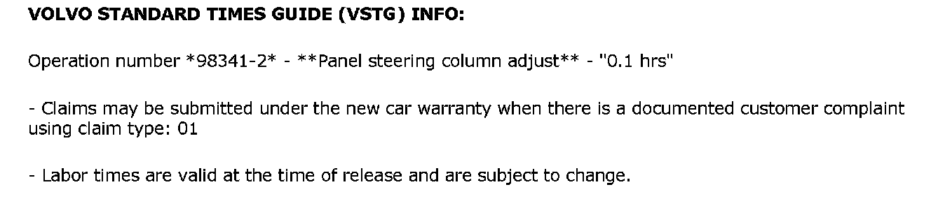 VOLVO STANDARD TIMES GUIDE (VSTG) INFO