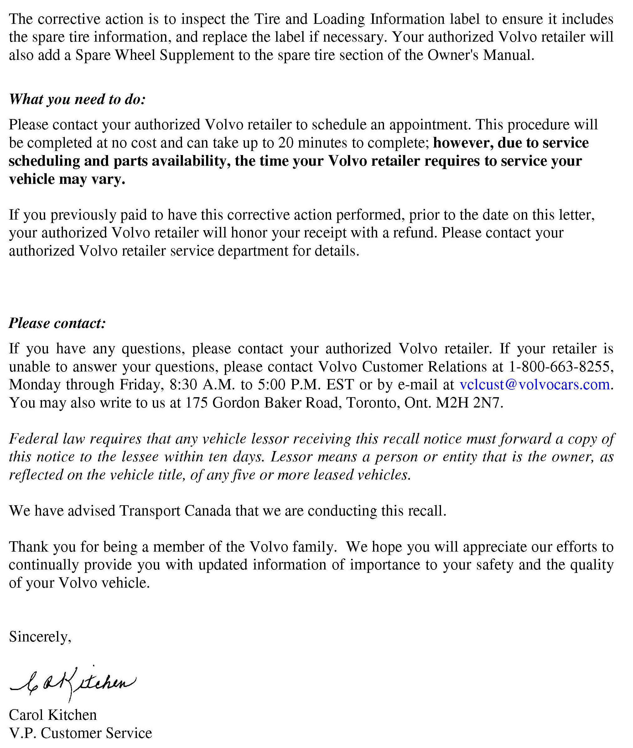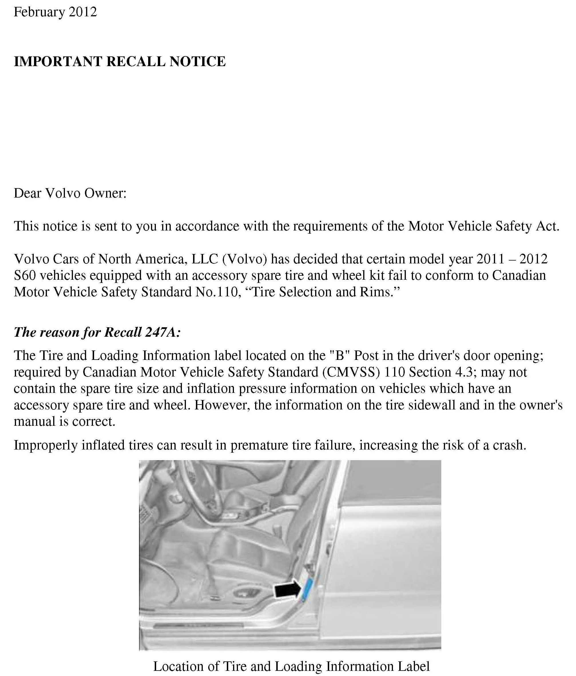 Recall - Spare Tire Loading Information Label Missing Tire Info