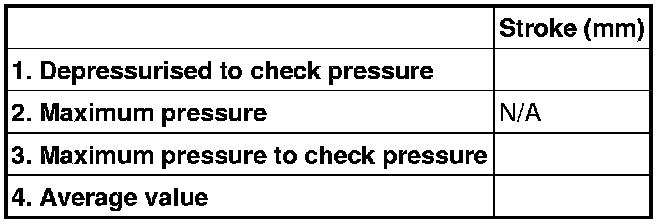 Calculate the average value by adding the read off stroke at the pressure increase (Depressurized to check pressure) with the read off value at the pressure reduction (Maximum pressure to check pressure), divide by 2.