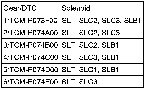 Hint: Check solenoid SLT, SLC1, SLC2, SLC3 and SLB1 according to: Checking internal components of the transmission Checking Internal Components Of The Transmission