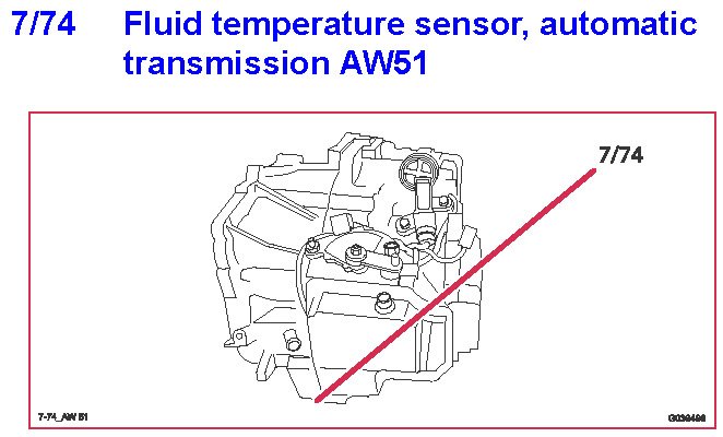 7/74 Fluid Temperature Sensor, Automatic Transmission AW51