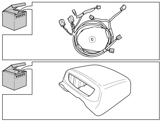 Note! There are two versions of cable harness for the tunnel console, with or without preparations for Digital TV receivers.The images in the installation instructions show cable harness without Digital TV receiver.